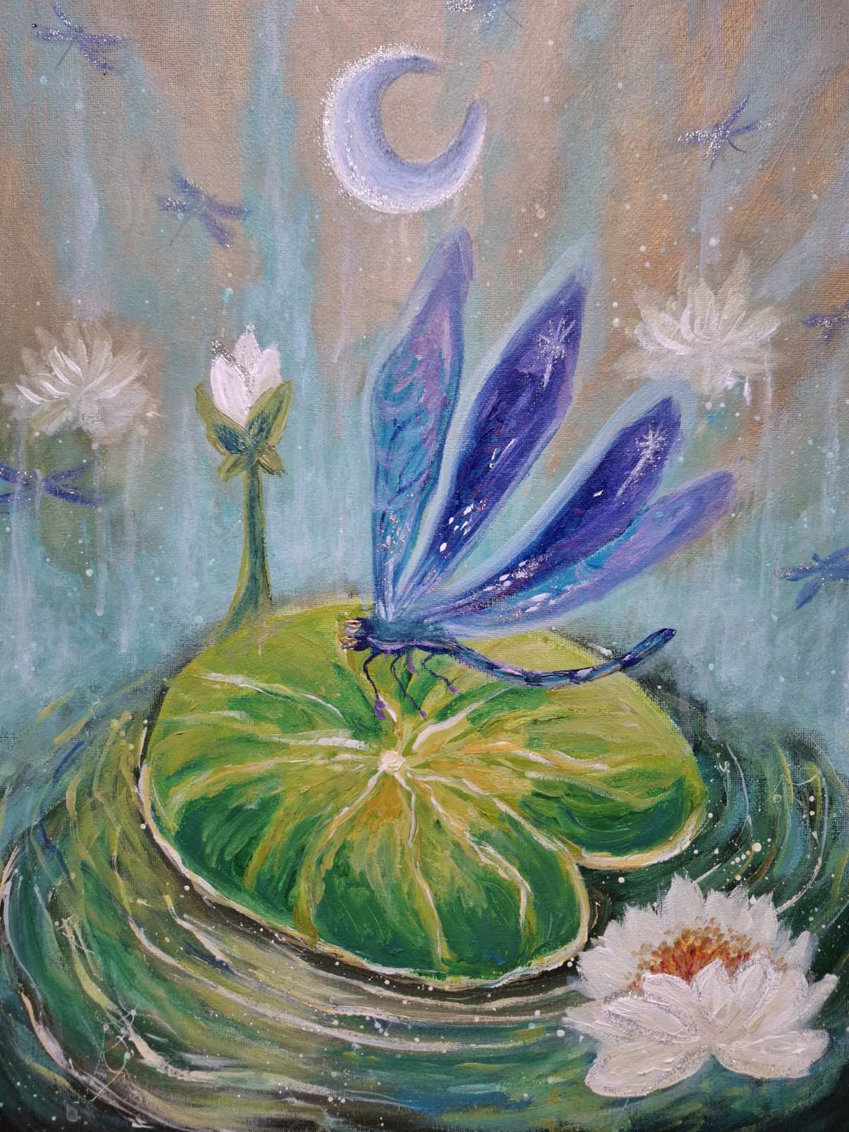 All the paintings in the collection invite you to listen closely and reconnect with yourself. Because, as one of my characters says: “Wings do not make a dragonfly. The melody of the heart does.”